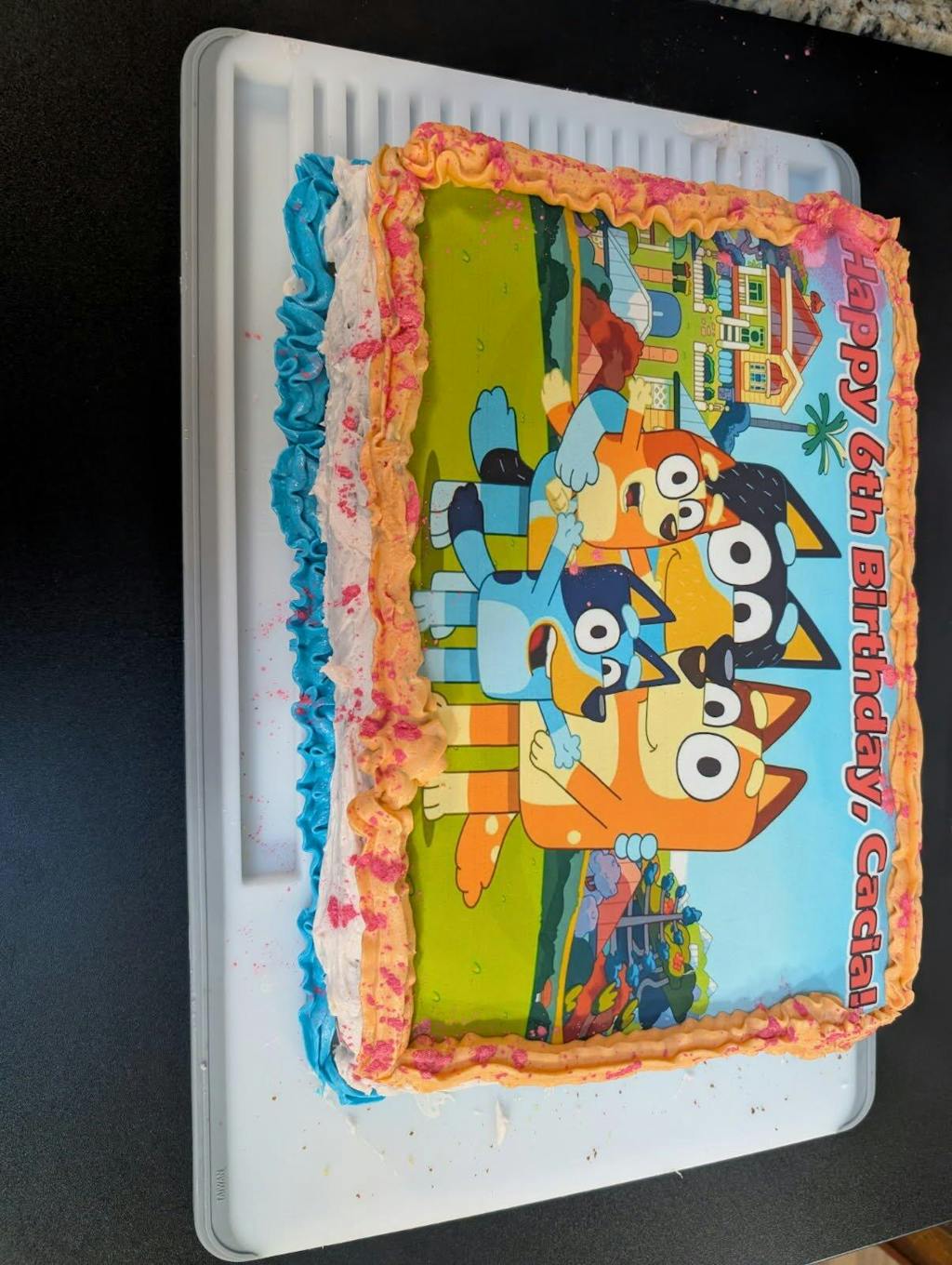 My son’s cake topper came out absolutely amazing! I am so happy with how it looked on the cake. My son loved it! I will be a repeat customer! I can’t recommend Sweet Custom Creations enough! (I forgot to take a picture of the cake before cutting but I’m including it anyway. It was fantastic!)